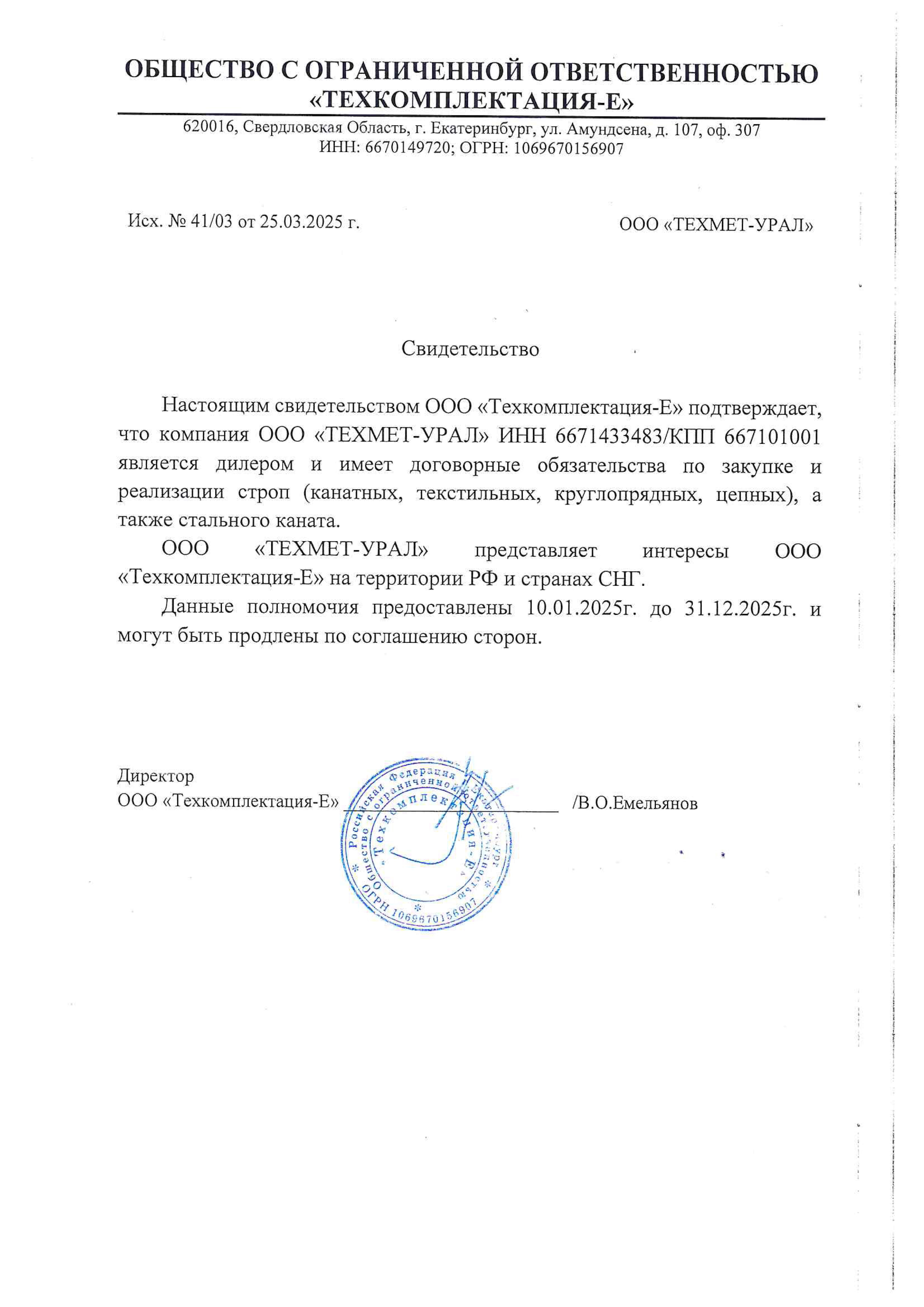 Сертификат дилера компании "Техкомплектация-Е" 1.4 мб