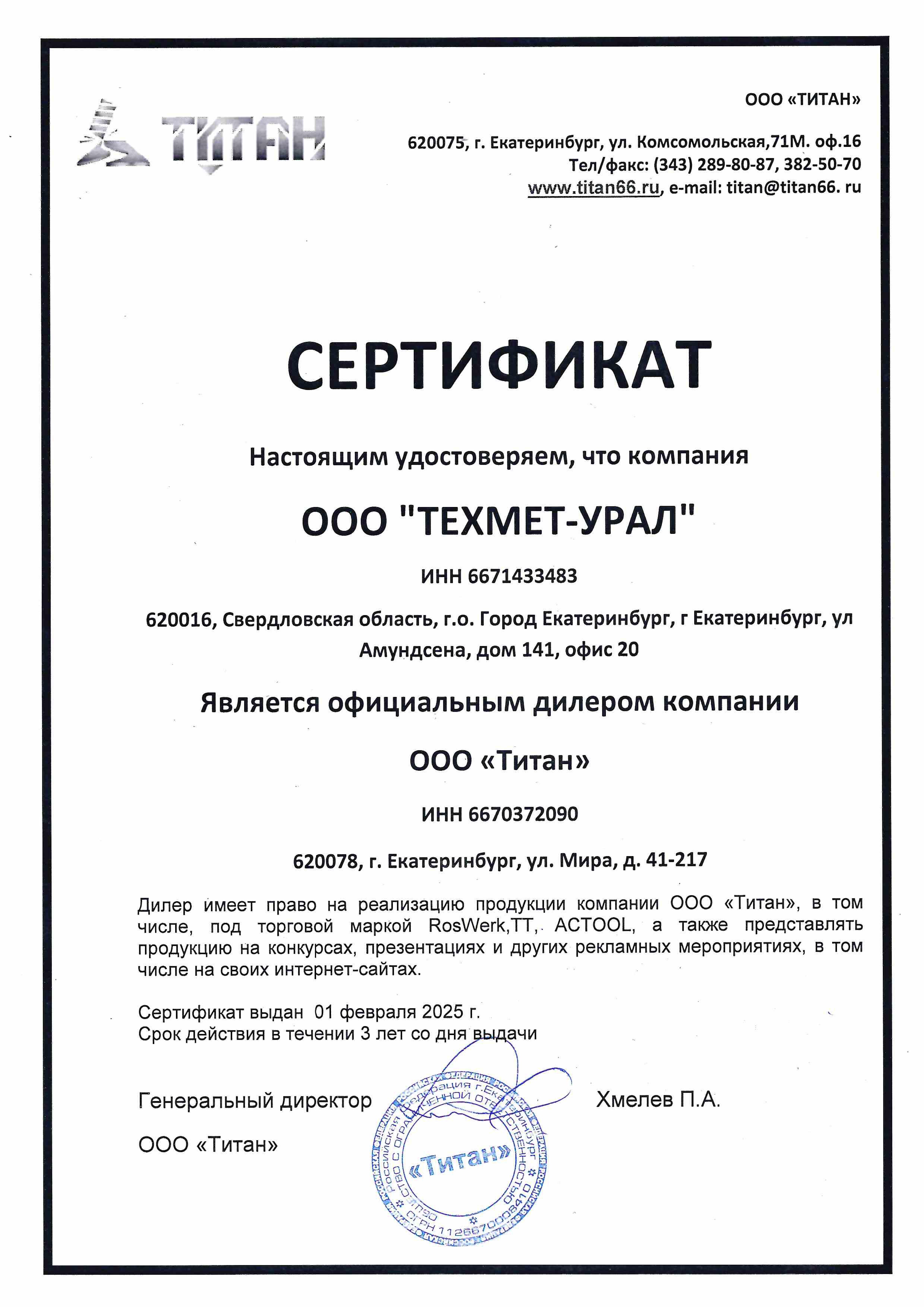 Сертификат дилера компании "Роторика-Урал" 982.8 кб