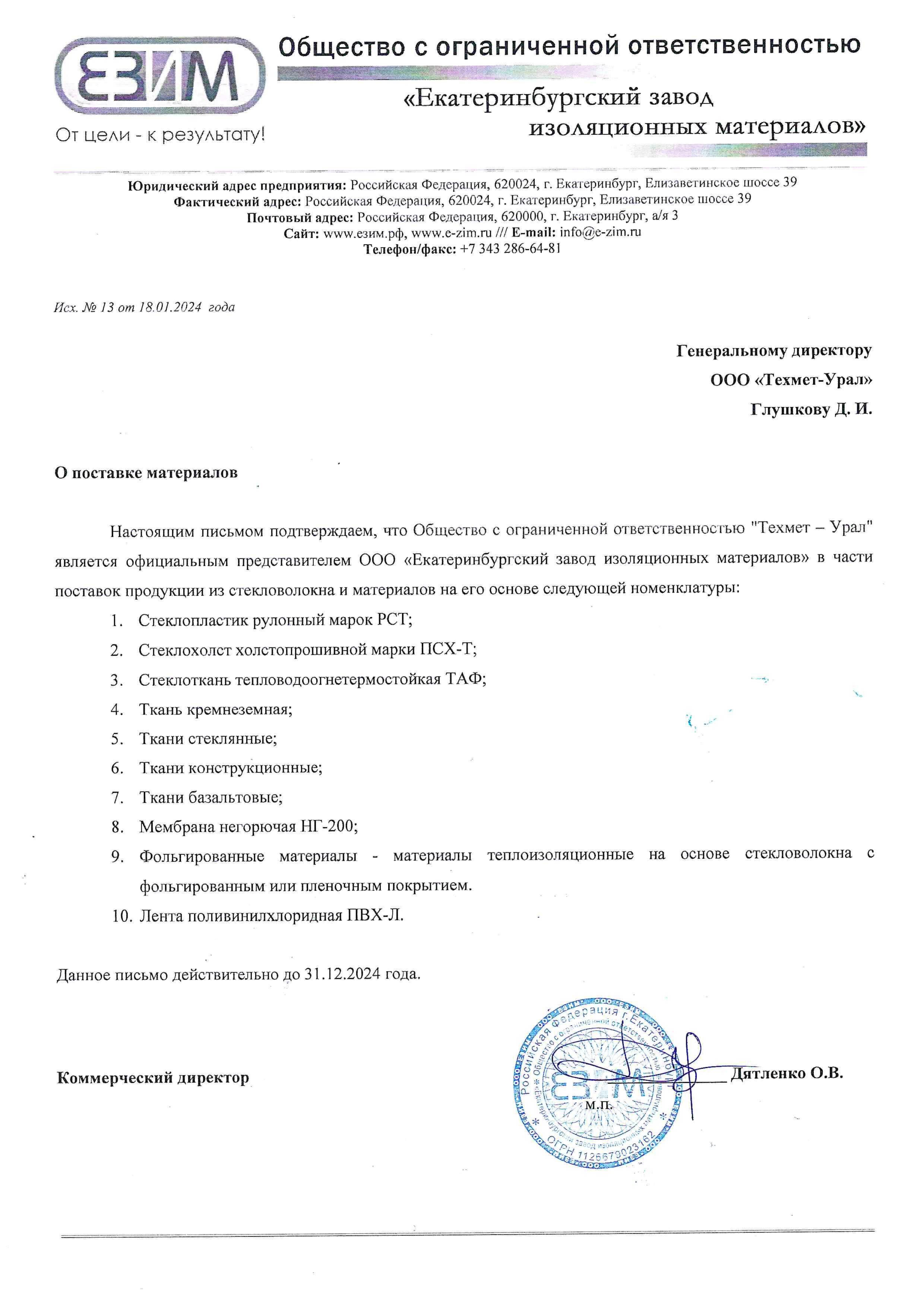 Сертификат дилера Екатеринбургского завода изоляционных материалов 1.5 мб